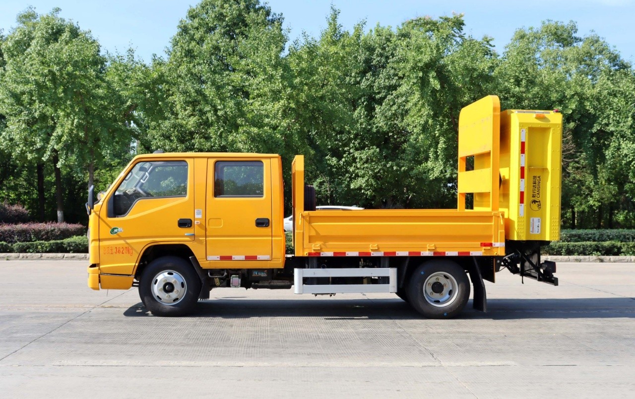 底盤型號:JX1041TSG26 底盤配置采用江鈴順達雙排底盤,國六江鈴115馬力發(fā)動機、五檔變速箱、7.00鋼絲胎、空調(diào)、方向助力、油剎、中控鎖、電動車窗、雙支架、多功能方向盤,雙USB接口,軸距3360,鋁合金油箱,ABS。上裝配置:采用Q235國標(biāo)邊3mm底板花紋板4mm厚,貨箱尺寸:2580mm長*1950mm寬*450mm高,箱體后部防撞緩沖模塊包采用國際知名技術(shù)產(chǎn)品70K防撞緩沖模塊,防撞緩沖吸能模塊主要由車載防撞緩沖墊和導(dǎo)向標(biāo)志架組成,充當(dāng)施工作業(yè)車輛后方的緩沖衛(wèi)士。如若發(fā)生追尾事故,能夠在肇事車輛和前方施工作業(yè)區(qū)域之間構(gòu)建一個緩沖區(qū)域,通過機具結(jié)構(gòu)變形吸收撞擊的能量,限度地降低被保護人員及設(shè)備遭到碰撞的幾率。